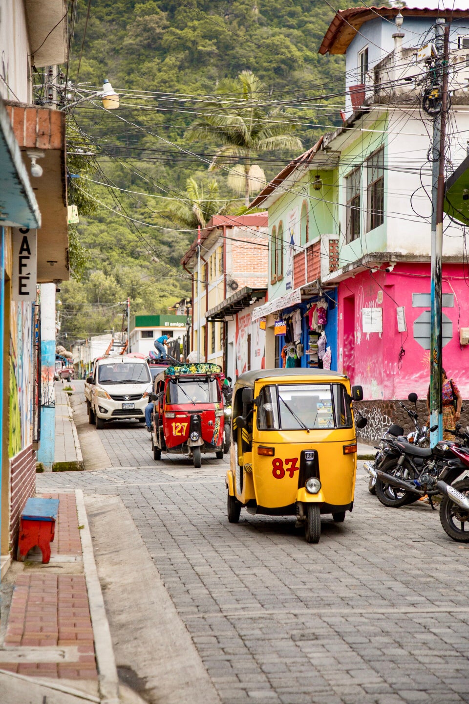 Après sa visite à Chichen Itsa, Valentina, notre photographe voyageuse prend la direction de San Cristobal de Las Casas ( 200 000 habitants, altitude 2140 m). 12 h à 13 h de trajet l'attendent dans un bus confortable. Elle arrive dans une ville qui d'emblée, lui plait et la séduit. Les restaurants, les hôtels, les librairies, les boutiques abondent. Elle découvre les jolies maisons colorées et les nombreuses boutiques où on trouve des objets artisanaux en ambre, pierre semi-précieuse extraite des gisements des montagnes du Chiapa.